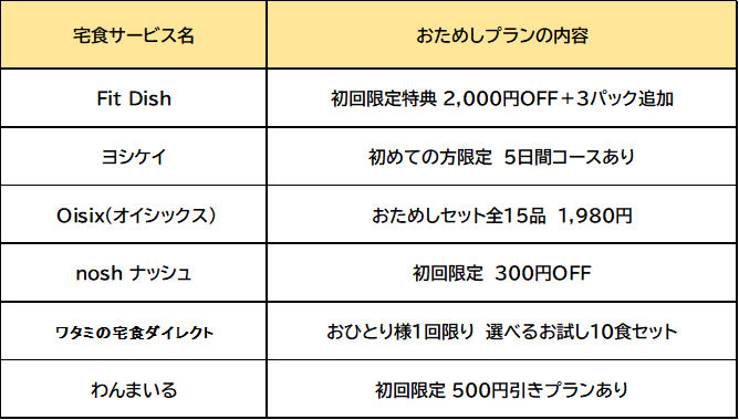 • 注意点:宅食には、「冷凍宅食」「冷蔵宅食」「ミールキット」などの種類があります