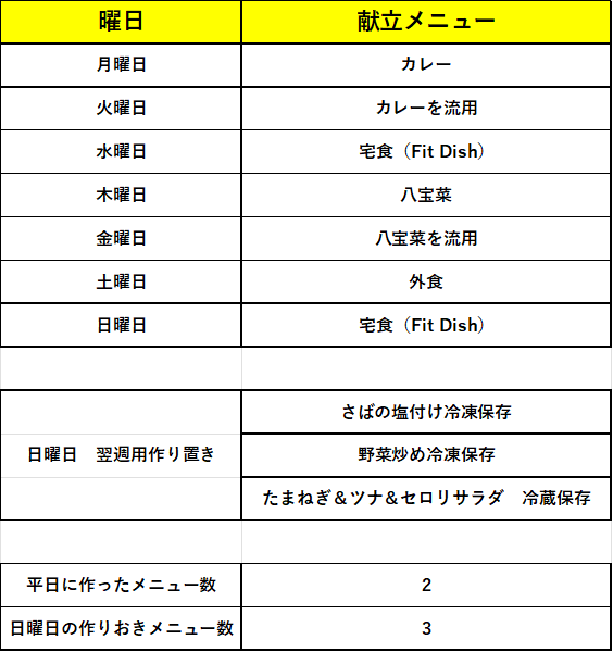 (平日=2  日曜日作り置き=3)