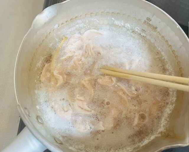 ↓鶏ミンチ肉に火が通っているか確認して